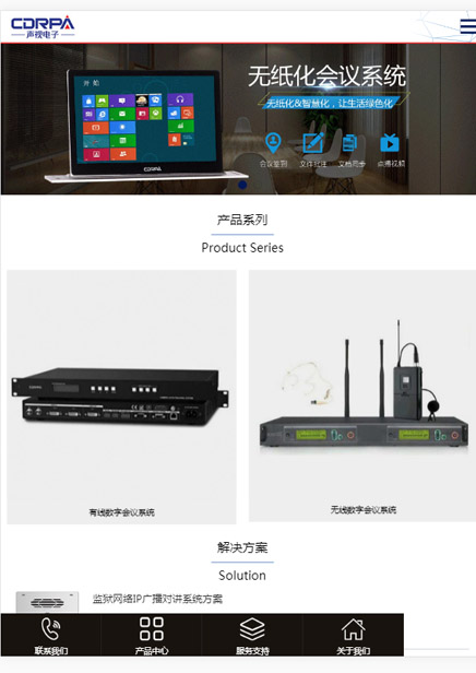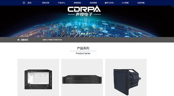 廣州聲視電子科技有限公司是一家專注于聲視訊互聯互通為核心, 為客戶提供整體音視頻產品與解決方案的品牌服務商,是集智慧教育IOT物聯網平臺、AVIT音視頻會務管理平臺、智慧云可視對講廣播系統、多網融合應急廣播系統、全數數字會議與無紙化會議系統、高清錄播與遠程視頻會議、專業擴聲等系統產品研發、生產、銷售、服務、項目設計于一體的高新技術企業,旗下擁有知名品牌“CDRPA”。